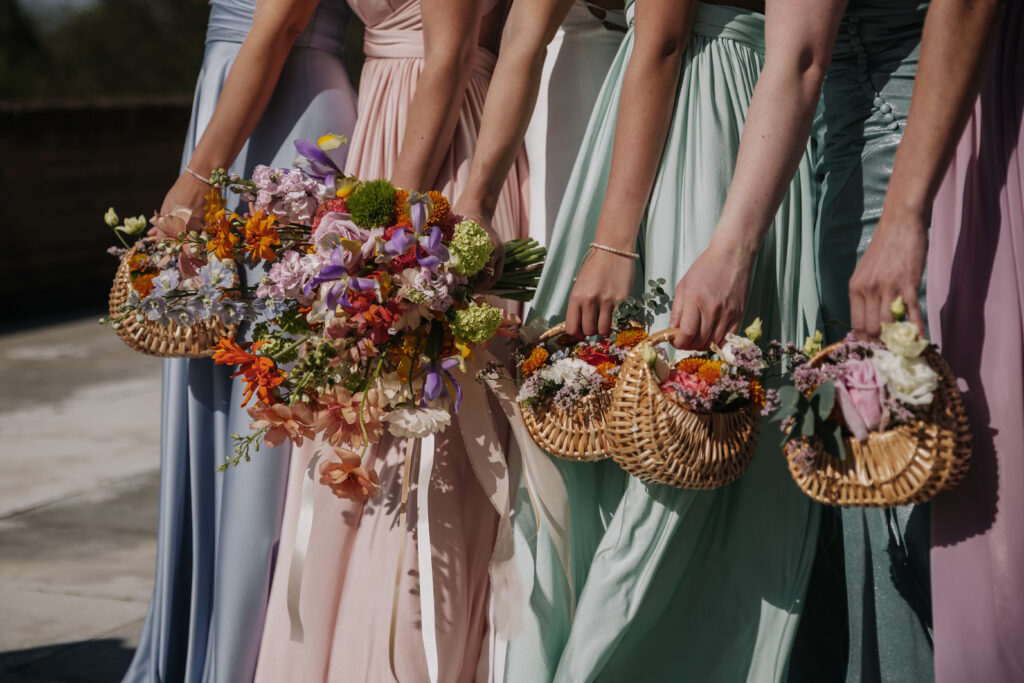 Veronika Rodriguez Hochzeitsplanung für Mülheim an der Ruhr und Umgebung, Brautpaar mit den Hochzeitsgästen auf der Wiese
